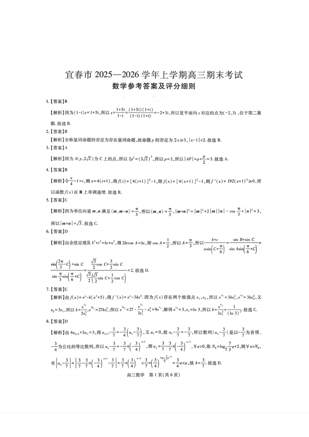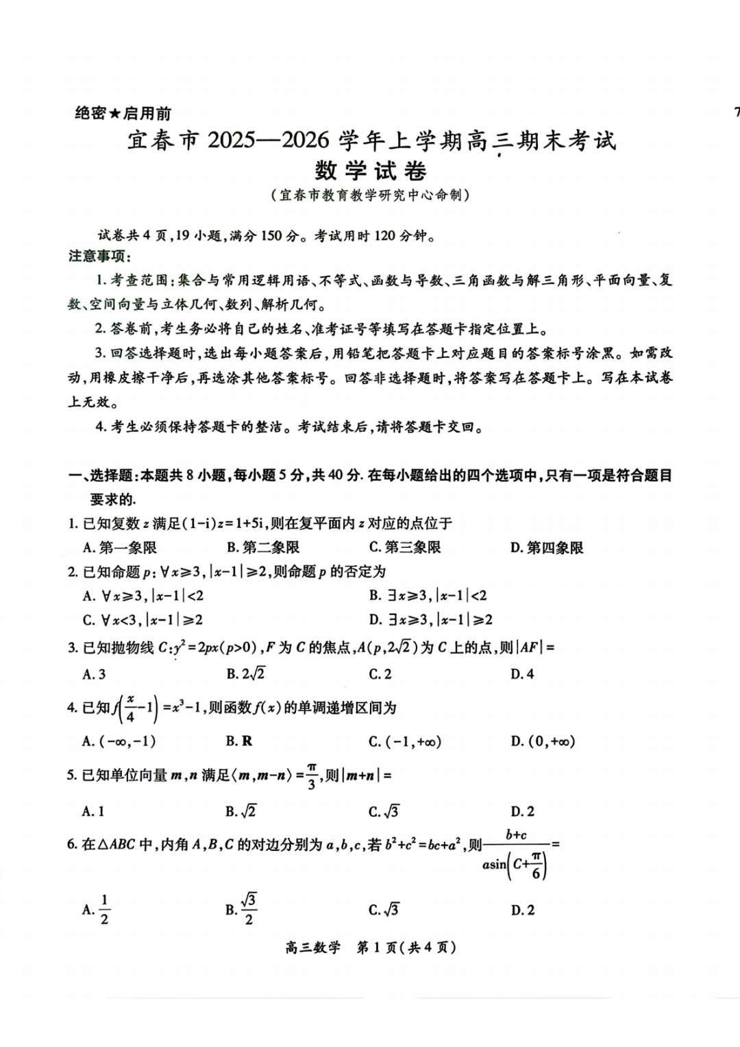 【全科】江西省宜春市2025-2026学年上学期高三1月期末考试