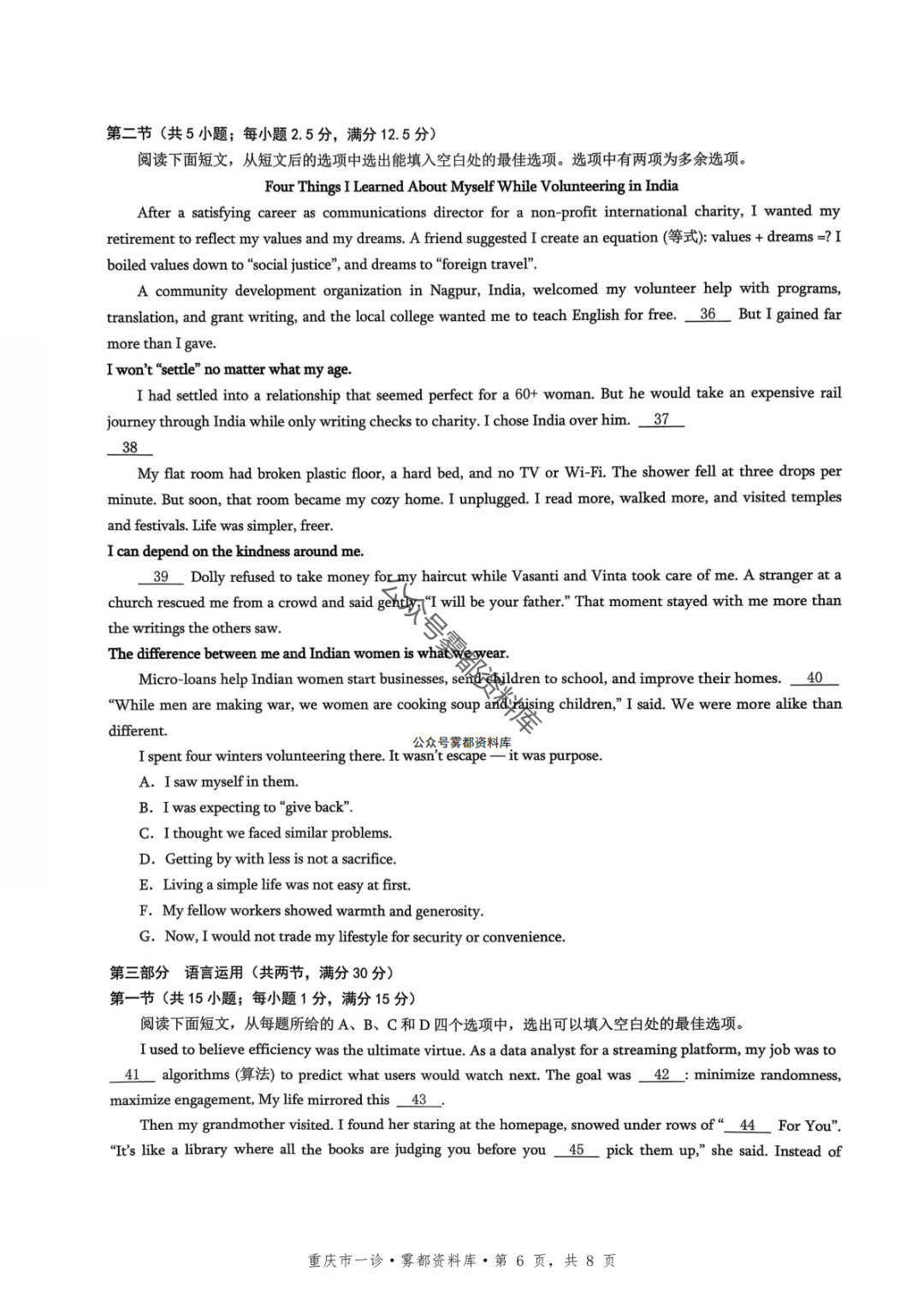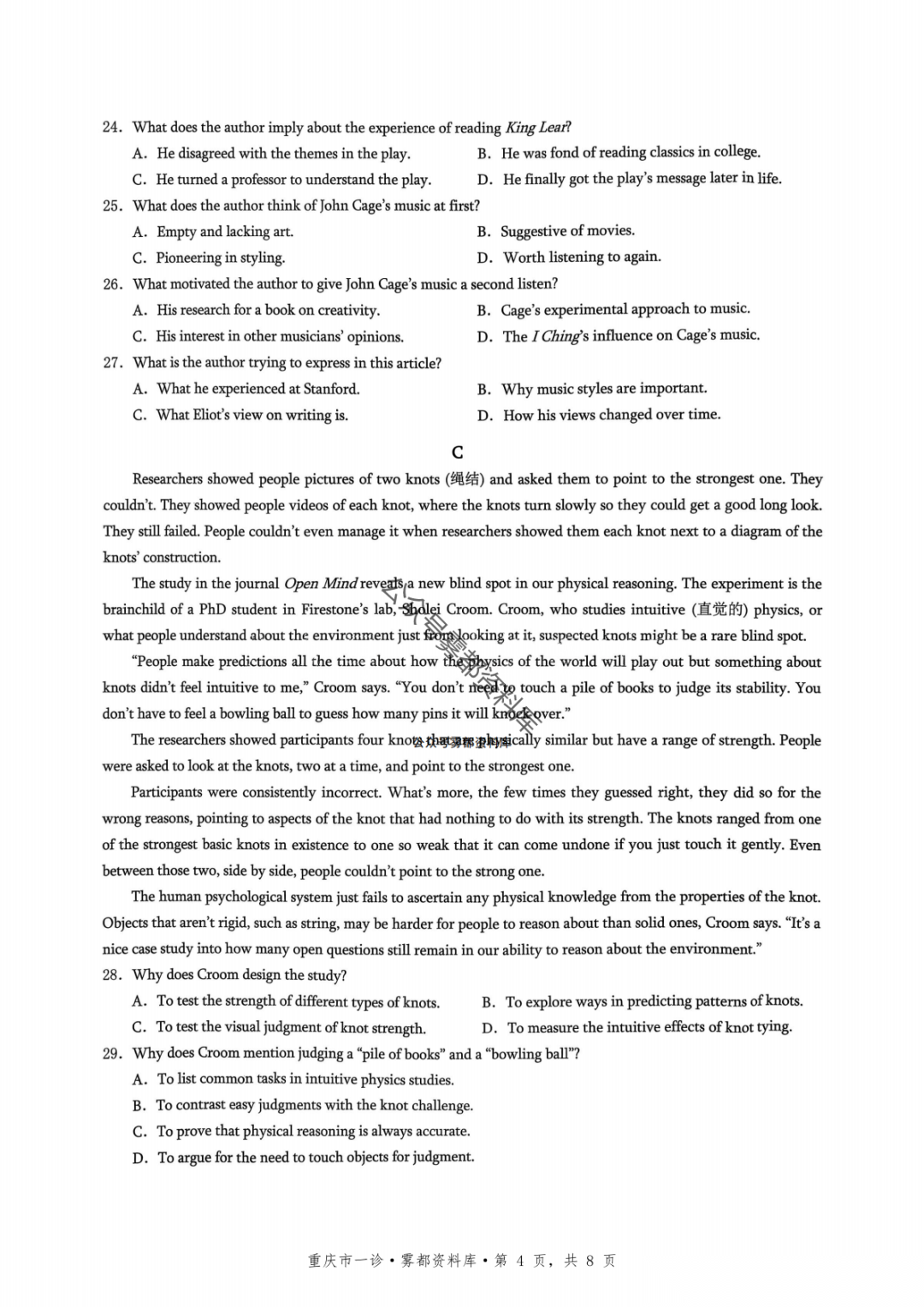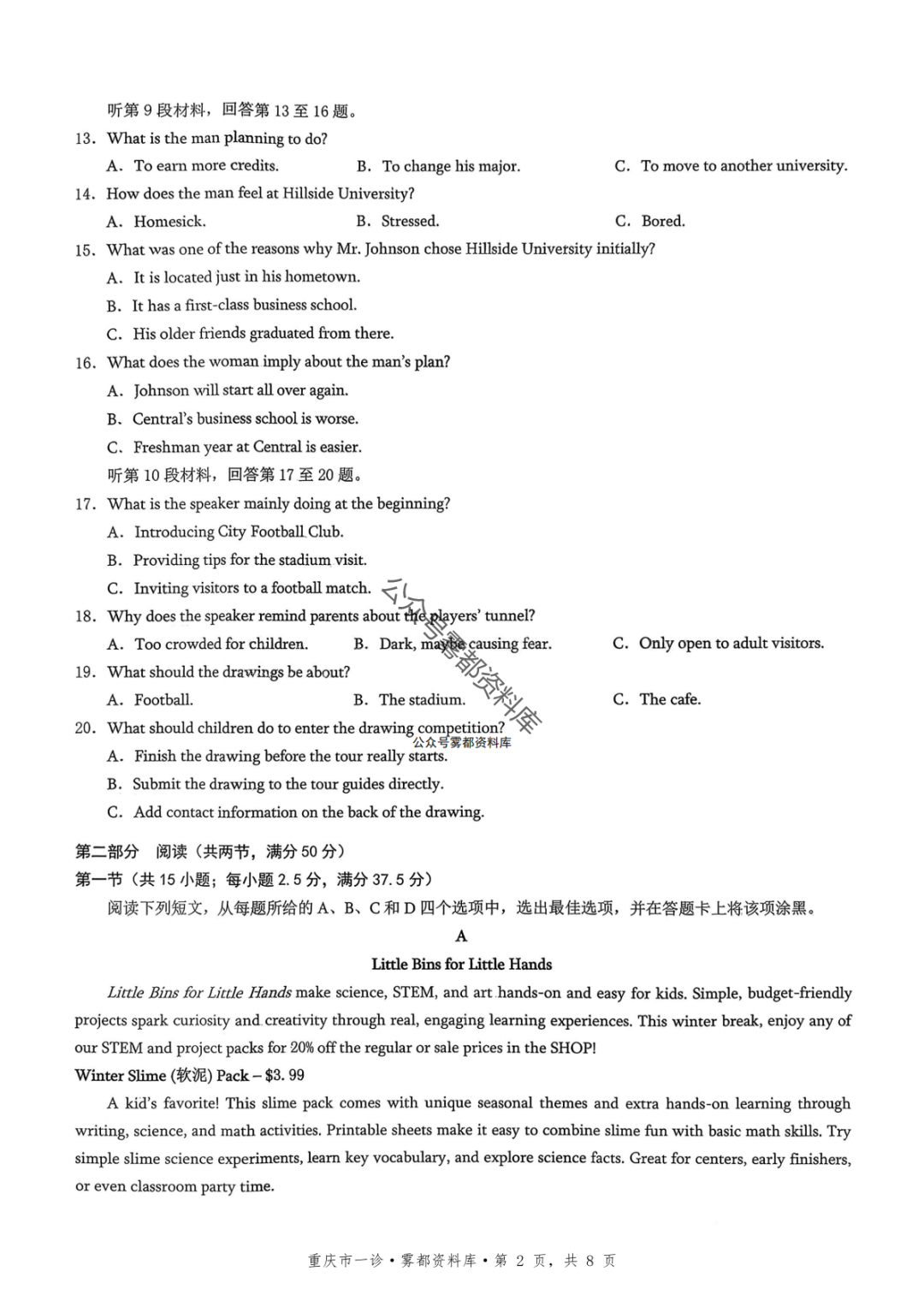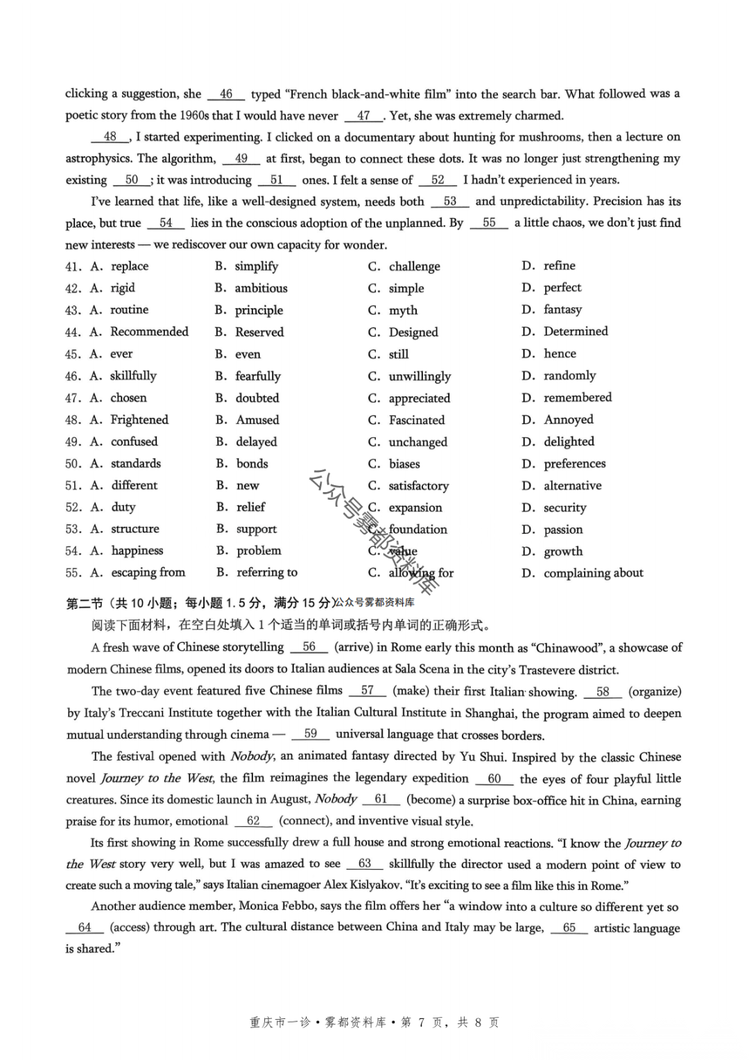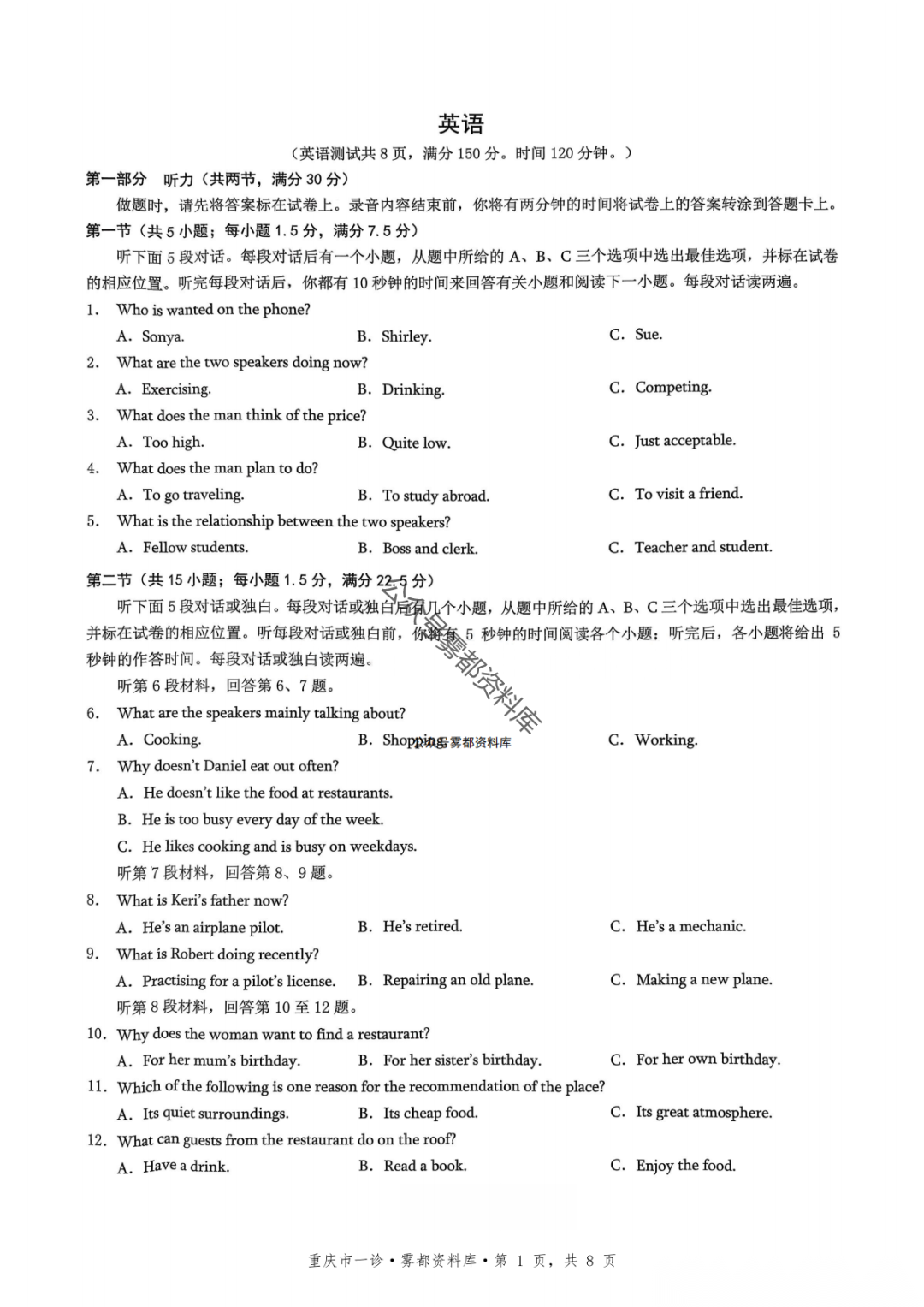 重庆一诊2026届高三康德卷英语试题及答案重庆一诊2026届高三康德卷英语试题及答案