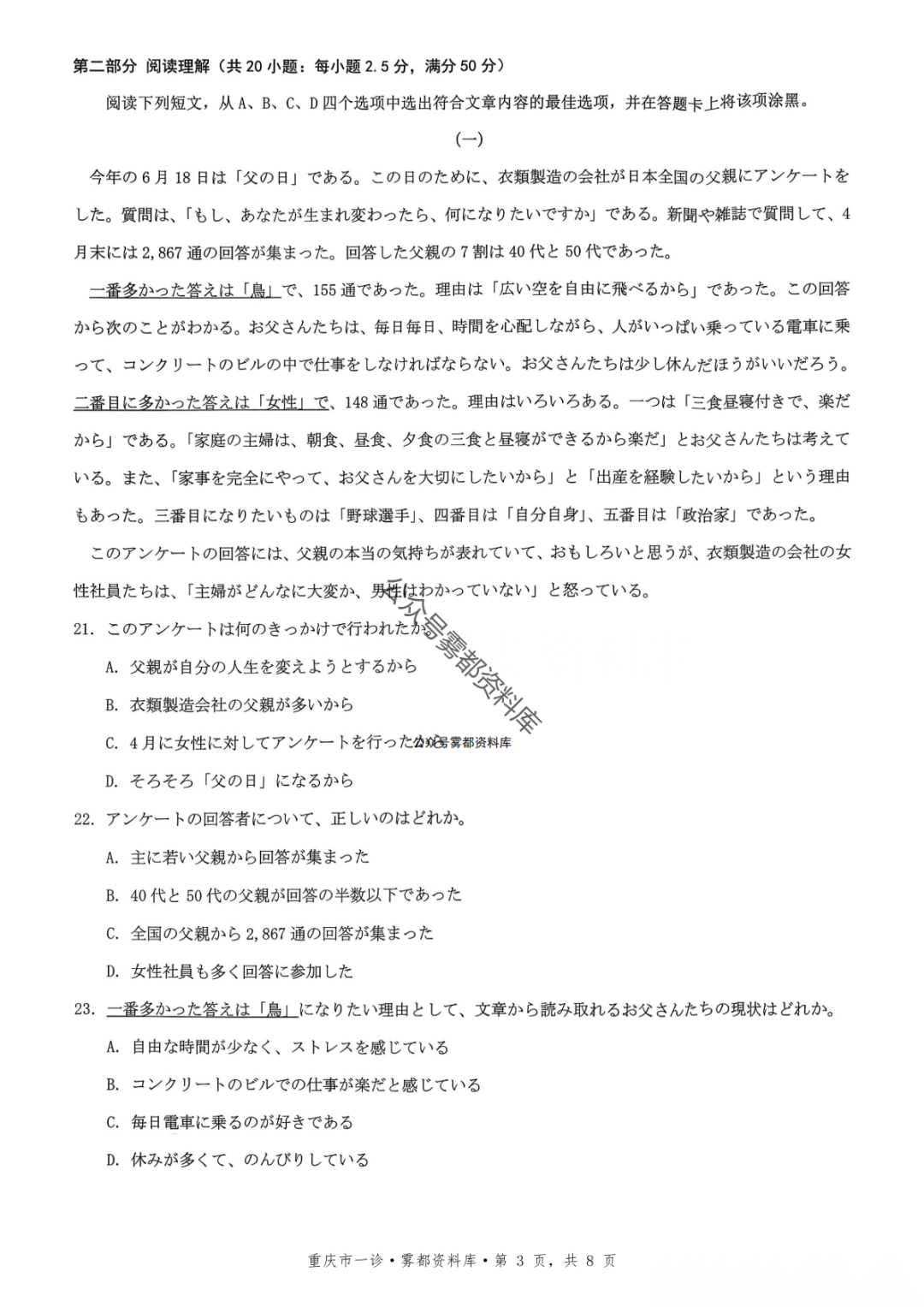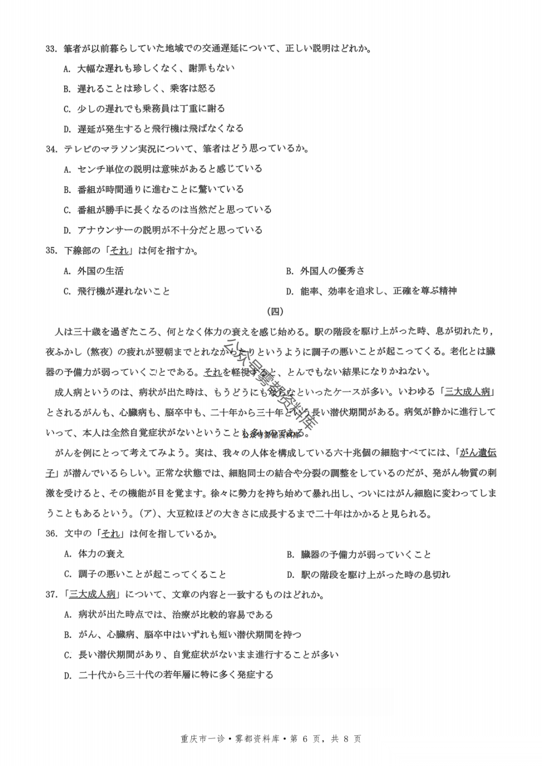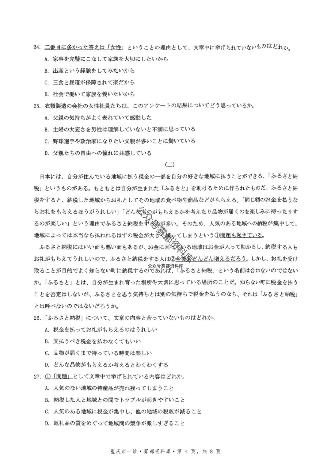 重庆一诊2026届高三康德卷日语试题及答案重庆一诊2026届高三康德卷日语试题及答案