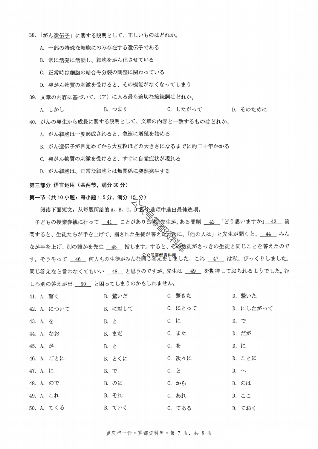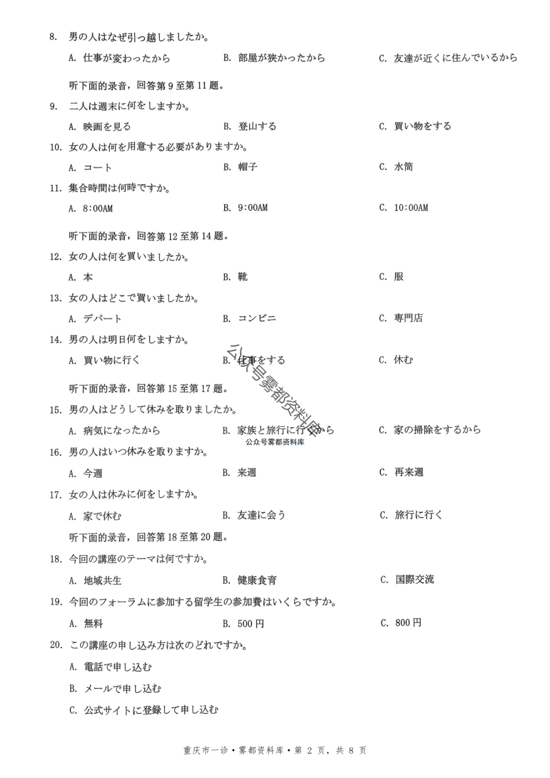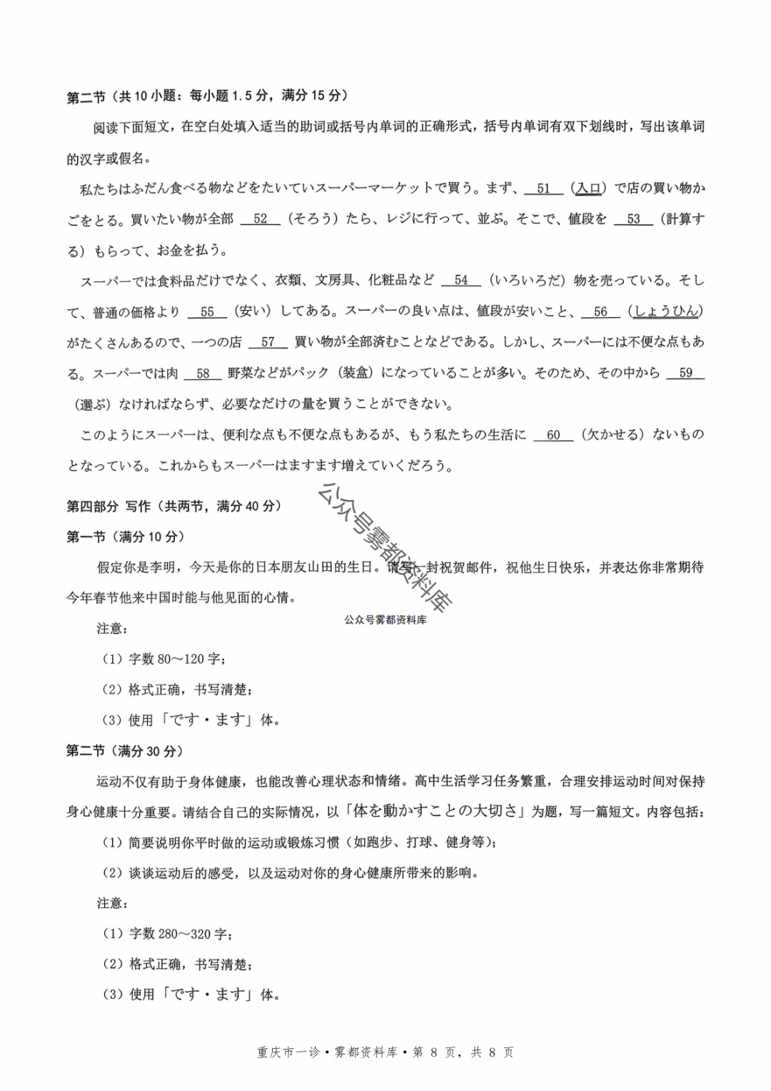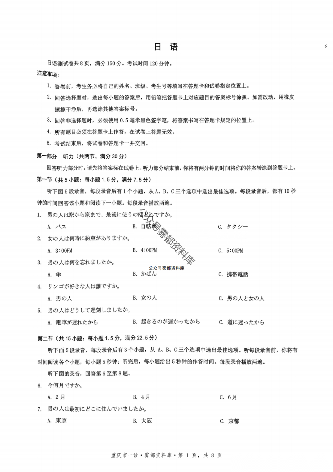 重庆一诊2026届高三康德卷日语试题及答案重庆一诊2026届高三康德卷日语试题及答案