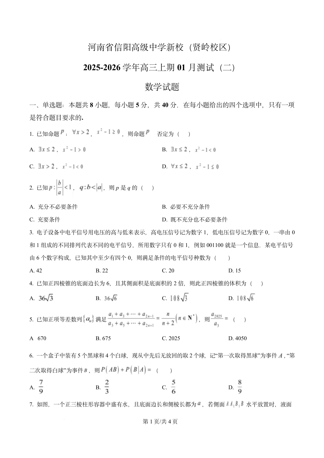 河南省信阳高级中学2026届高三上学期1月月考(二)