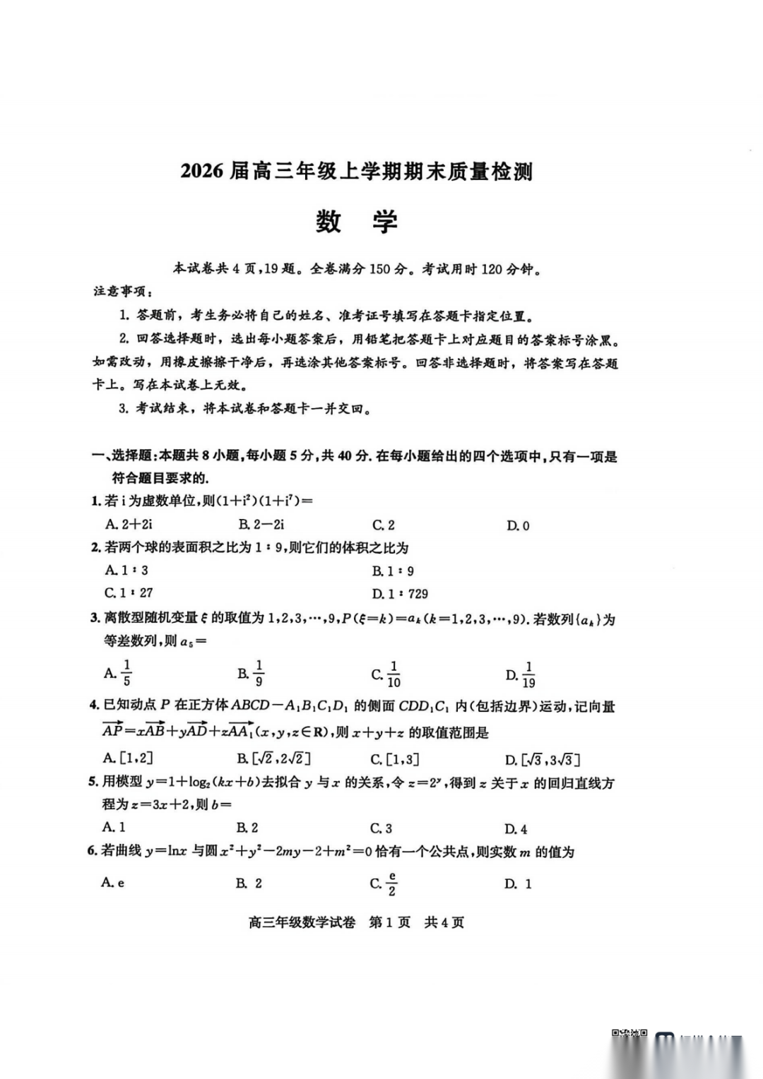 【乌鲁木齐一模全科】乌鲁木齐地区2026年高三年级第一次质量监测【乌鲁木齐一模全科】乌鲁木齐地区2026年高三年级...