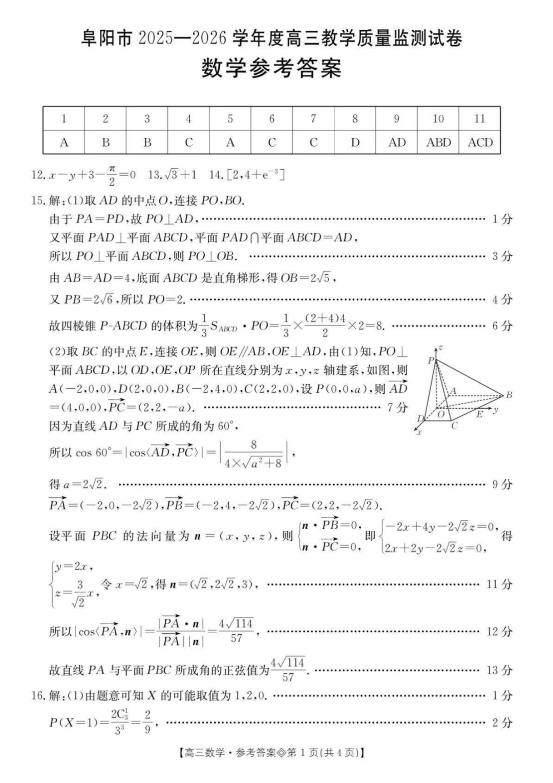 【全科】安徽省阜阳市2025-2026学年高三上学期1月期末考试