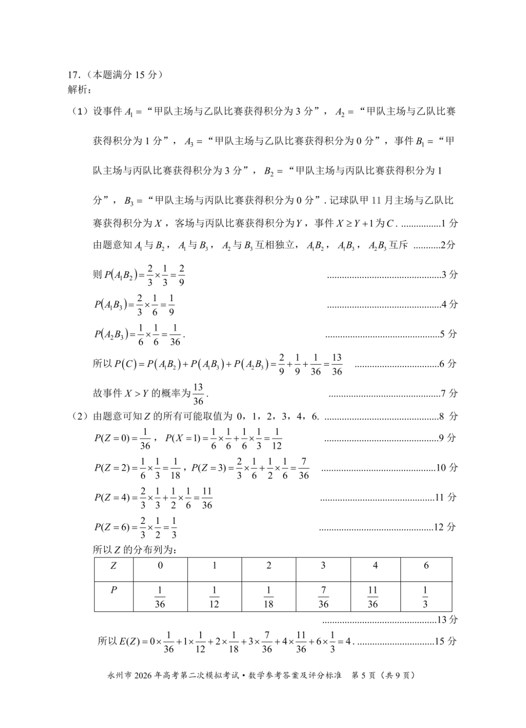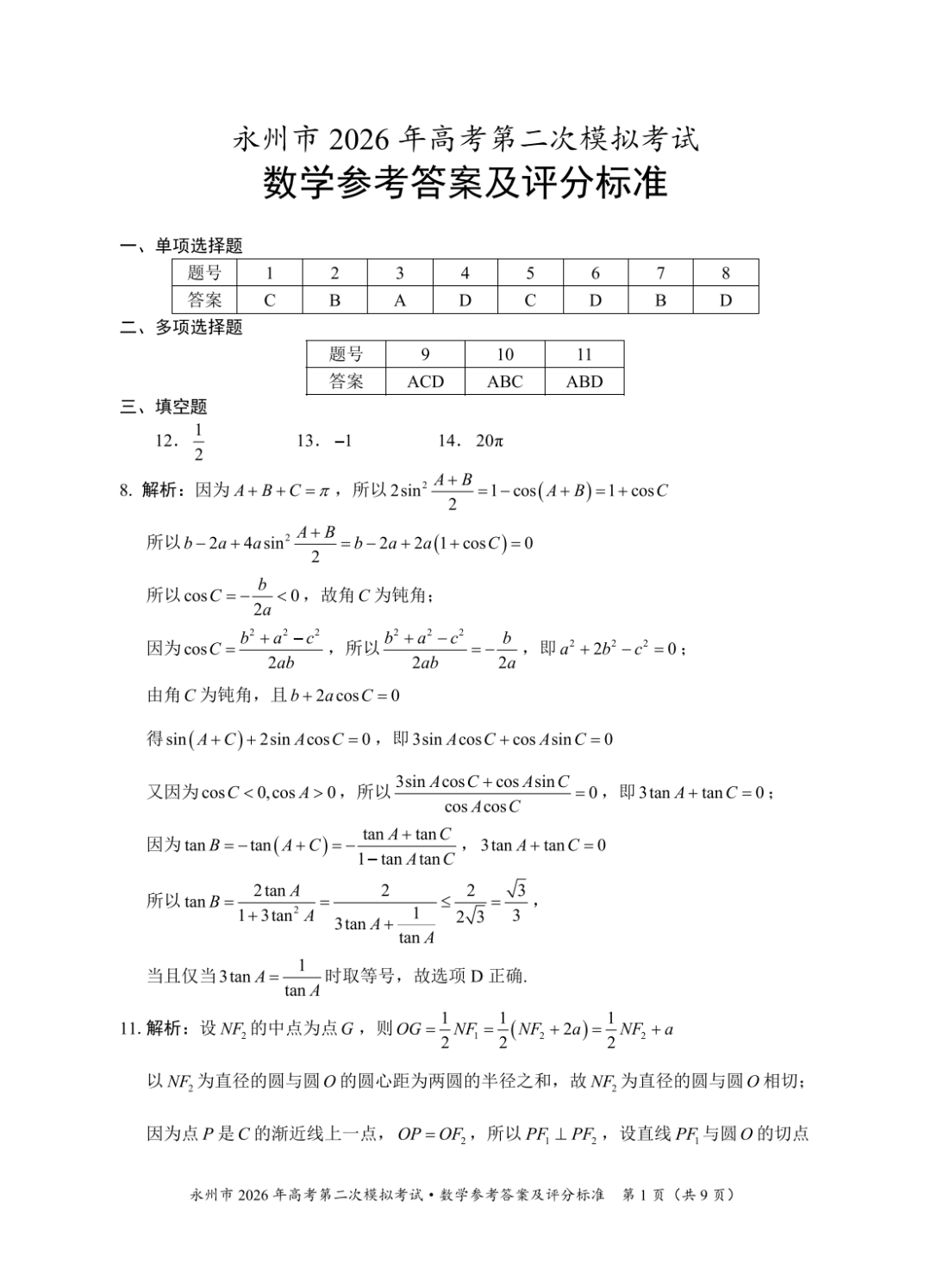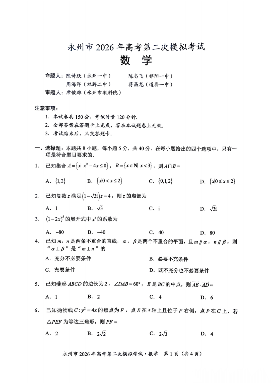 【永州二模全科】湖南省永州市2026年高考第二次模拟考试