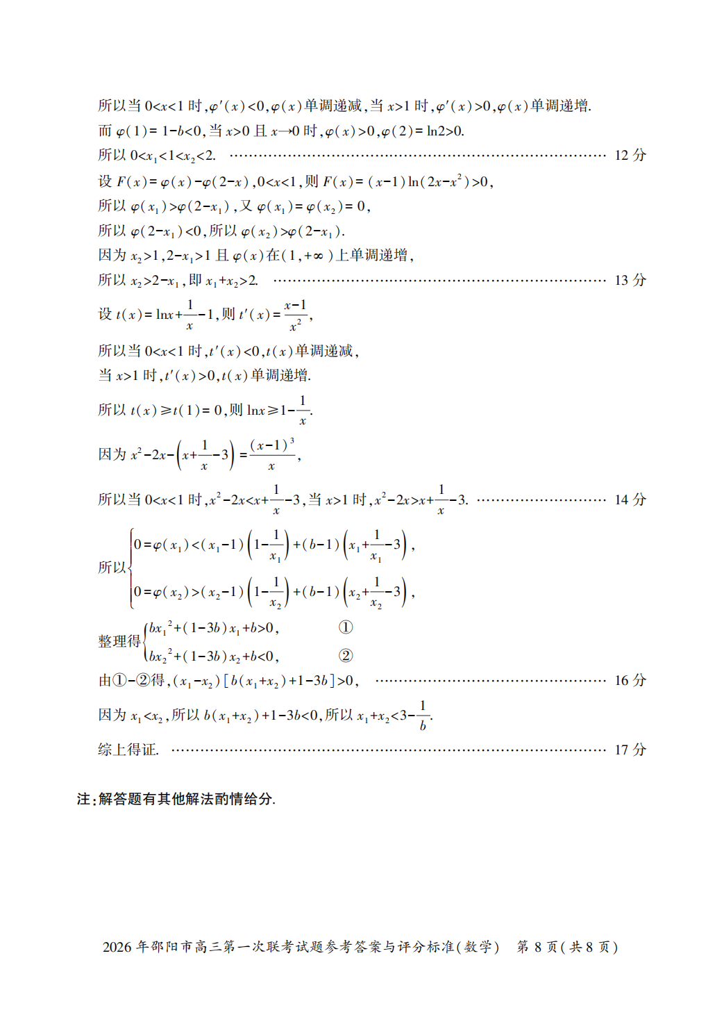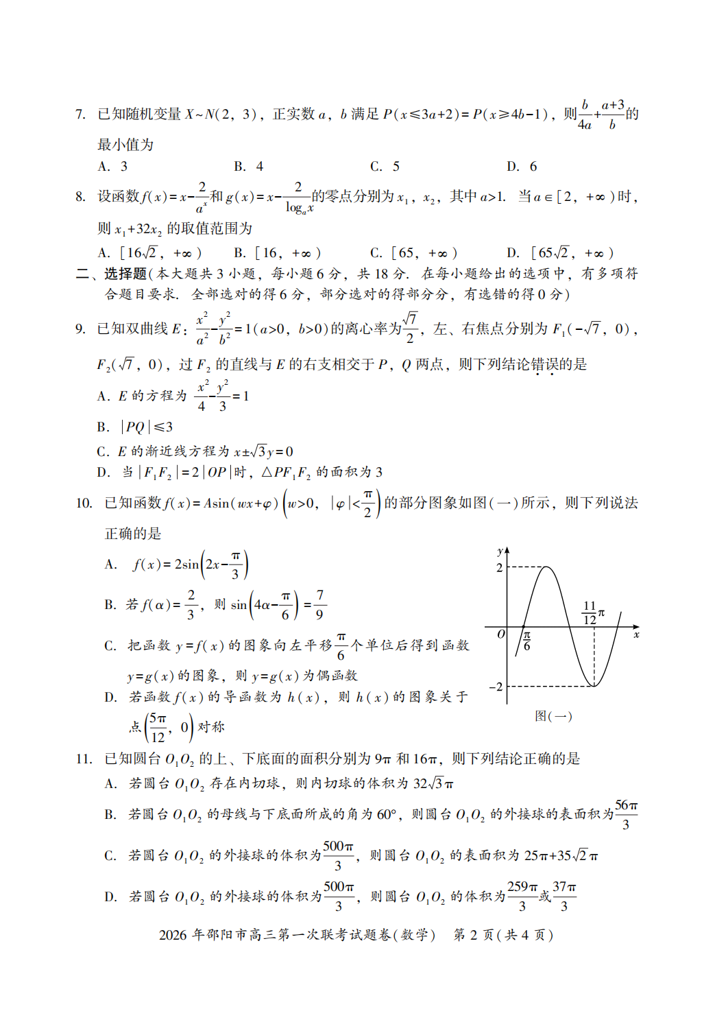 【邵阳一模全科】2026年邵阳市高三第一次联合试题卷