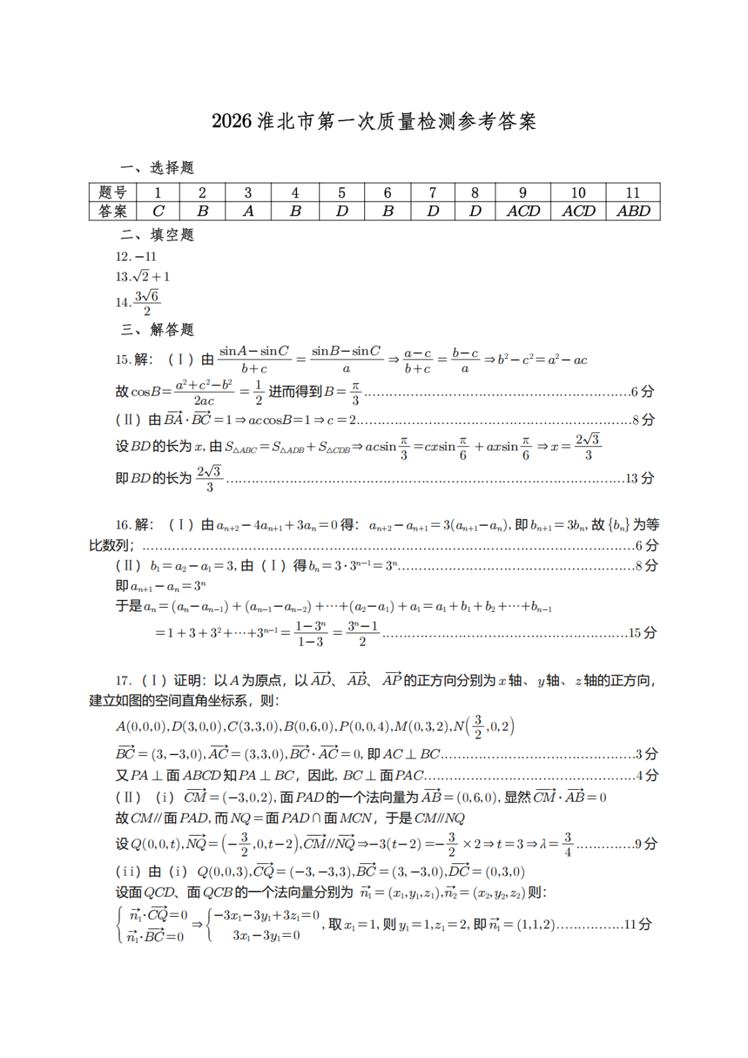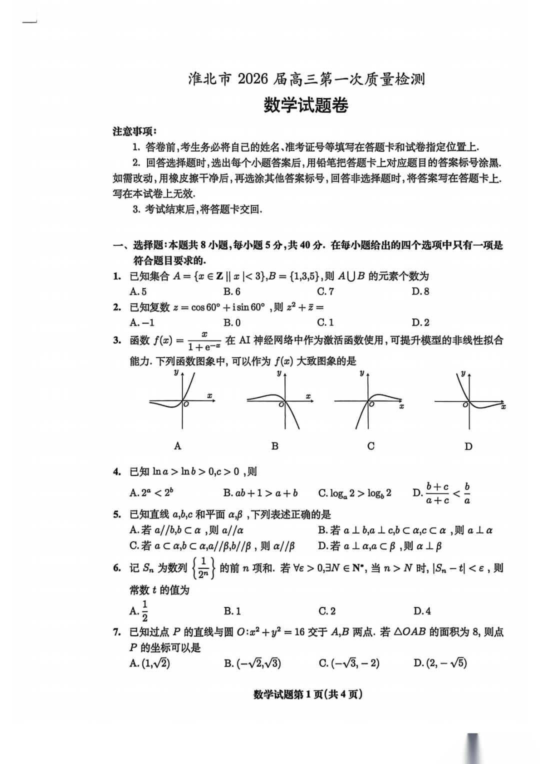 【淮北一模全科】淮北市2026届高三第一次质量检测