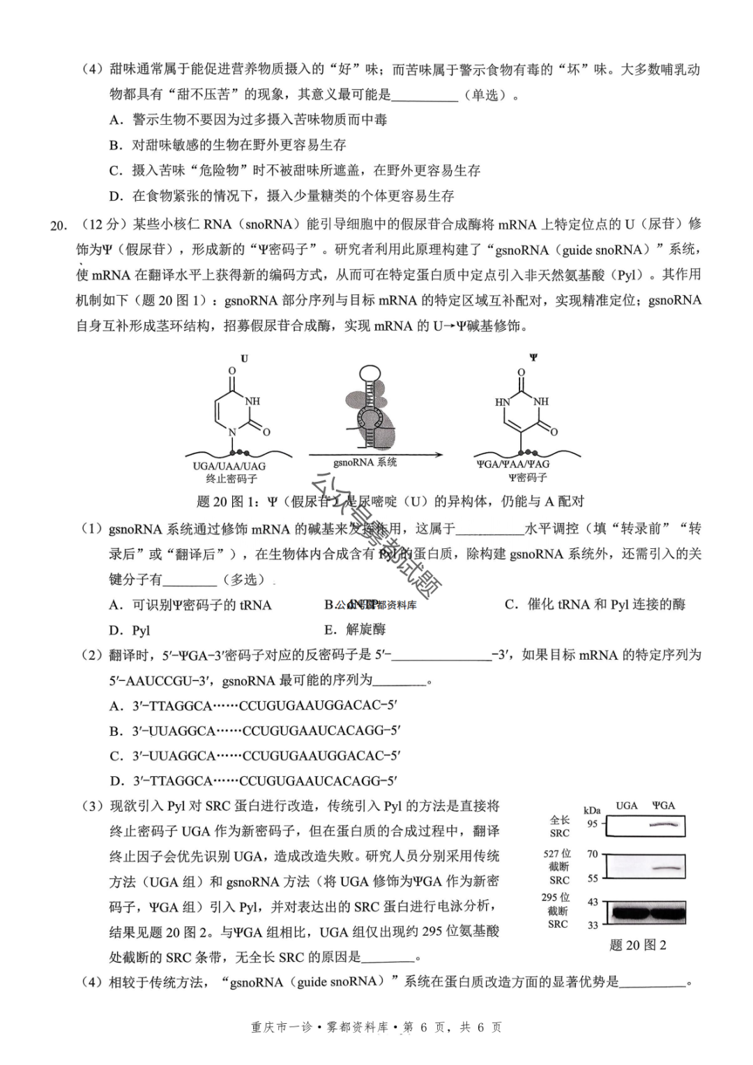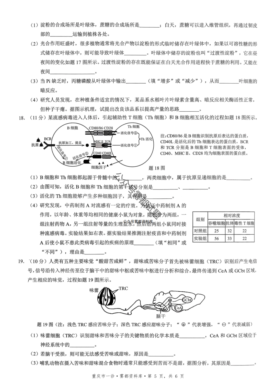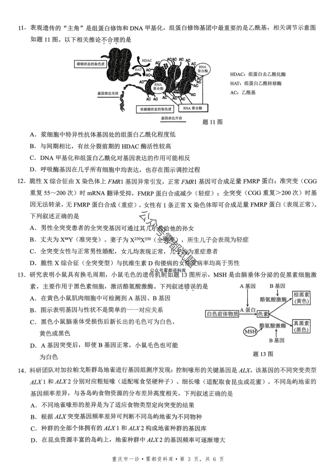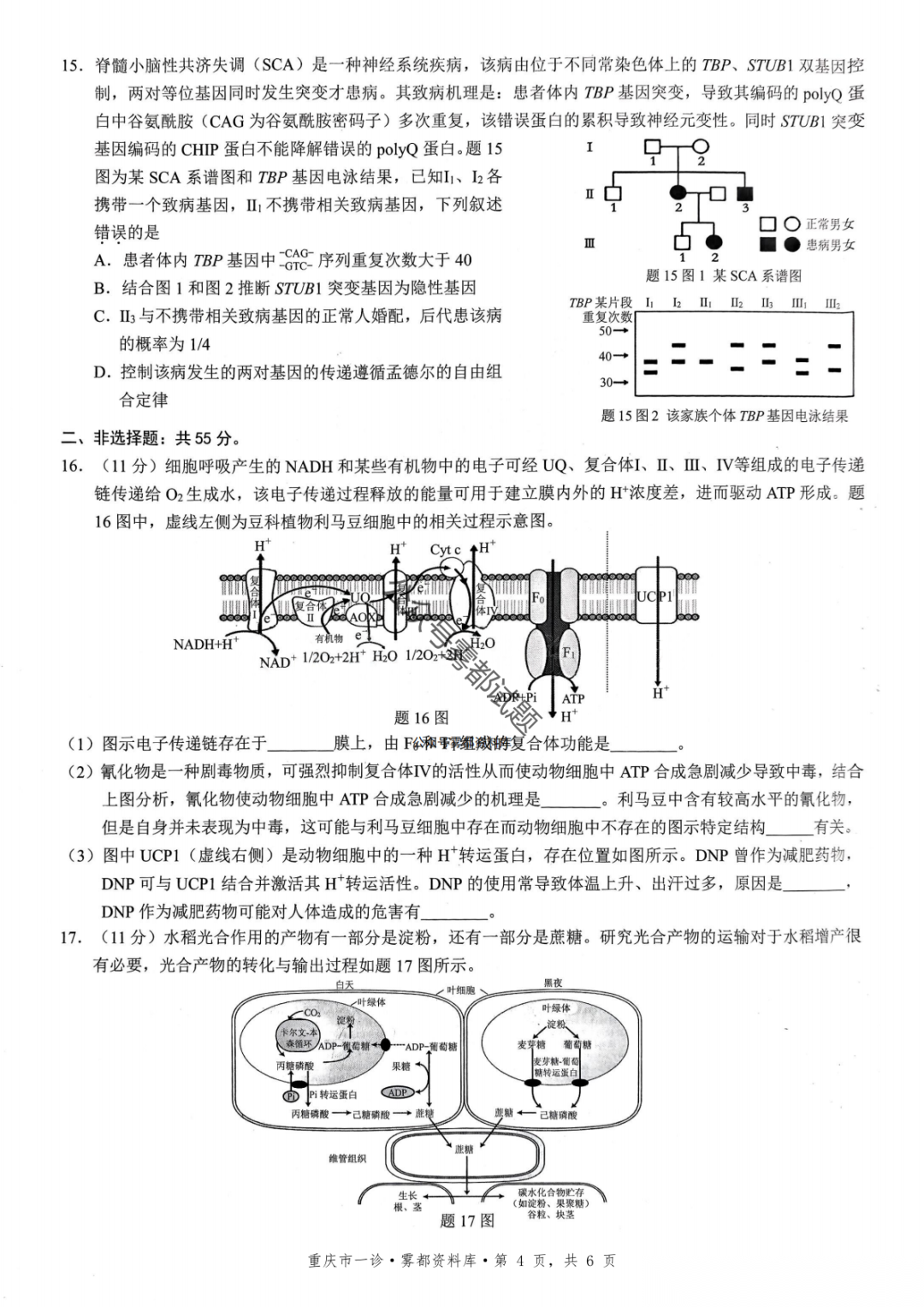 重磅!2026届重庆一诊生物试卷+标准答案发布(康德卷1月期末)