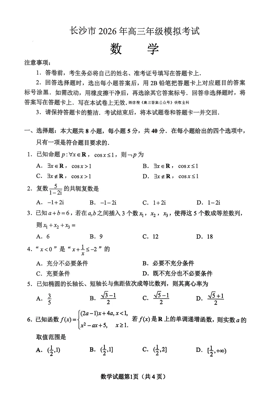 长沙市2026年高三年级模拟考试