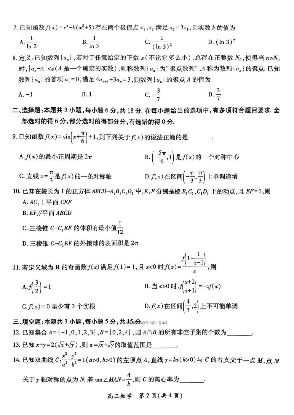 【莆田一检全科】2026届莆田市高三1月质量检测(九师联盟1月联考)【莆田一检全科】2026届莆田市高三1月质量检测(...