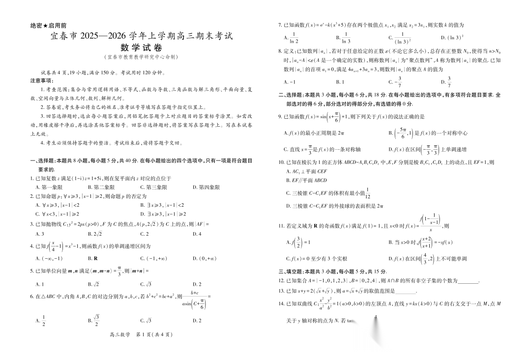 宜春市2025-2026学年高三期末考试下载宜春市2025-2026学年高三期末考试下载