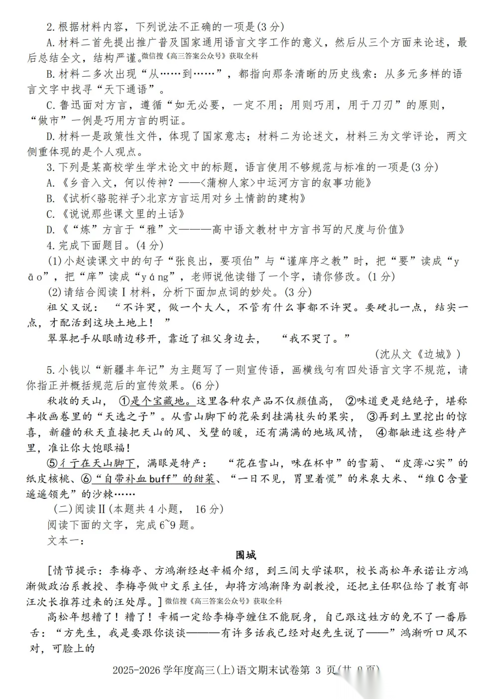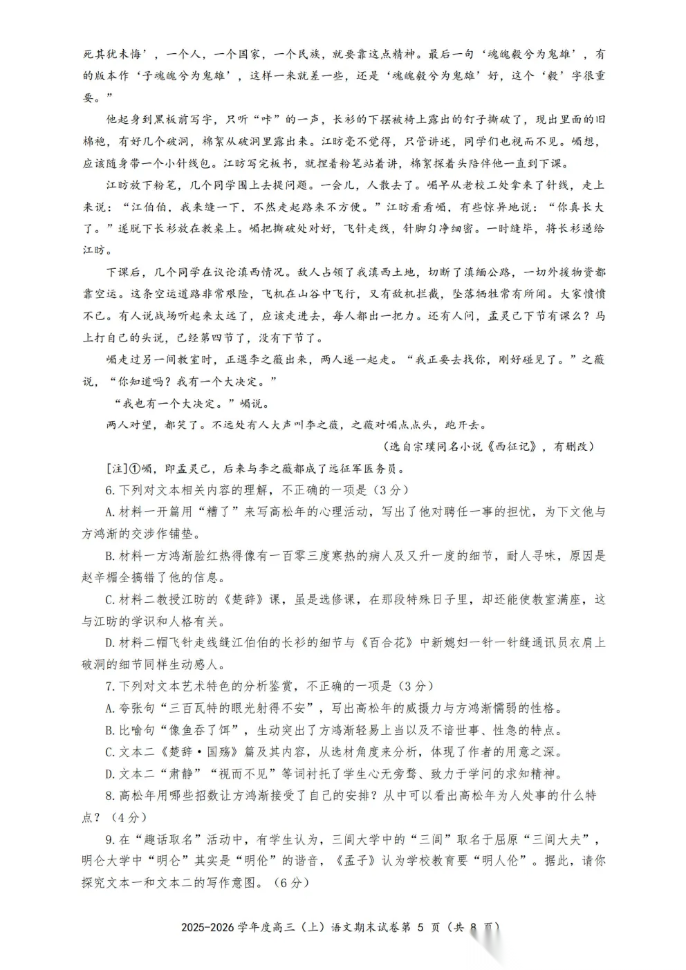 郑州外国语2025-2026学年高三调研5答案郑州外国语2025-2026学年高三调研5答案