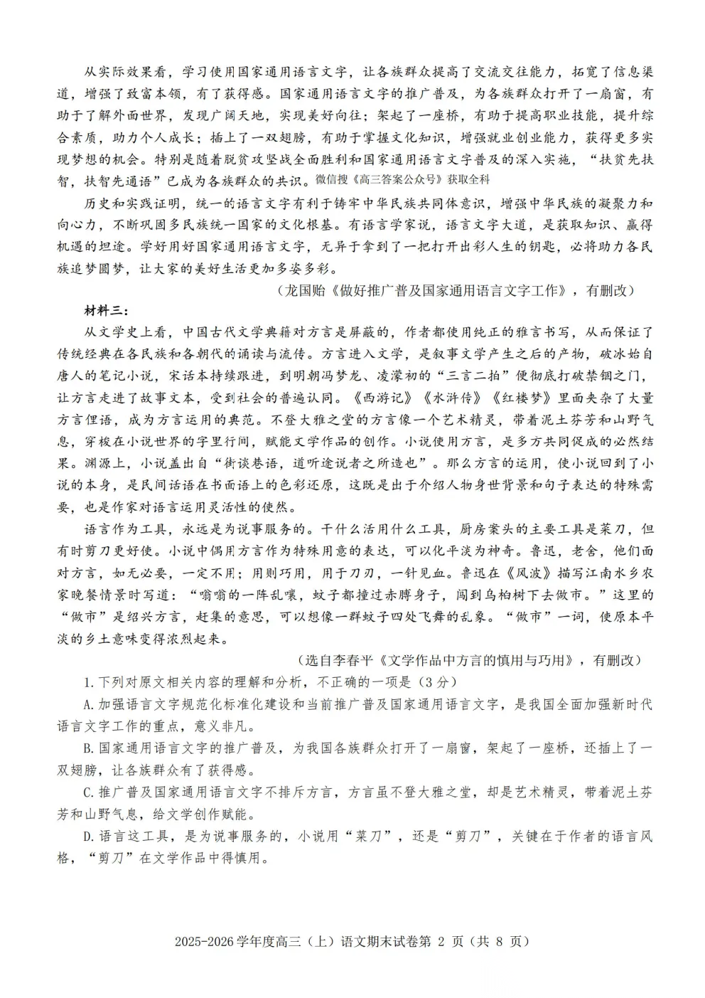2026金科大联考高三2月联考答案2026金科大联考高三2月联考答案