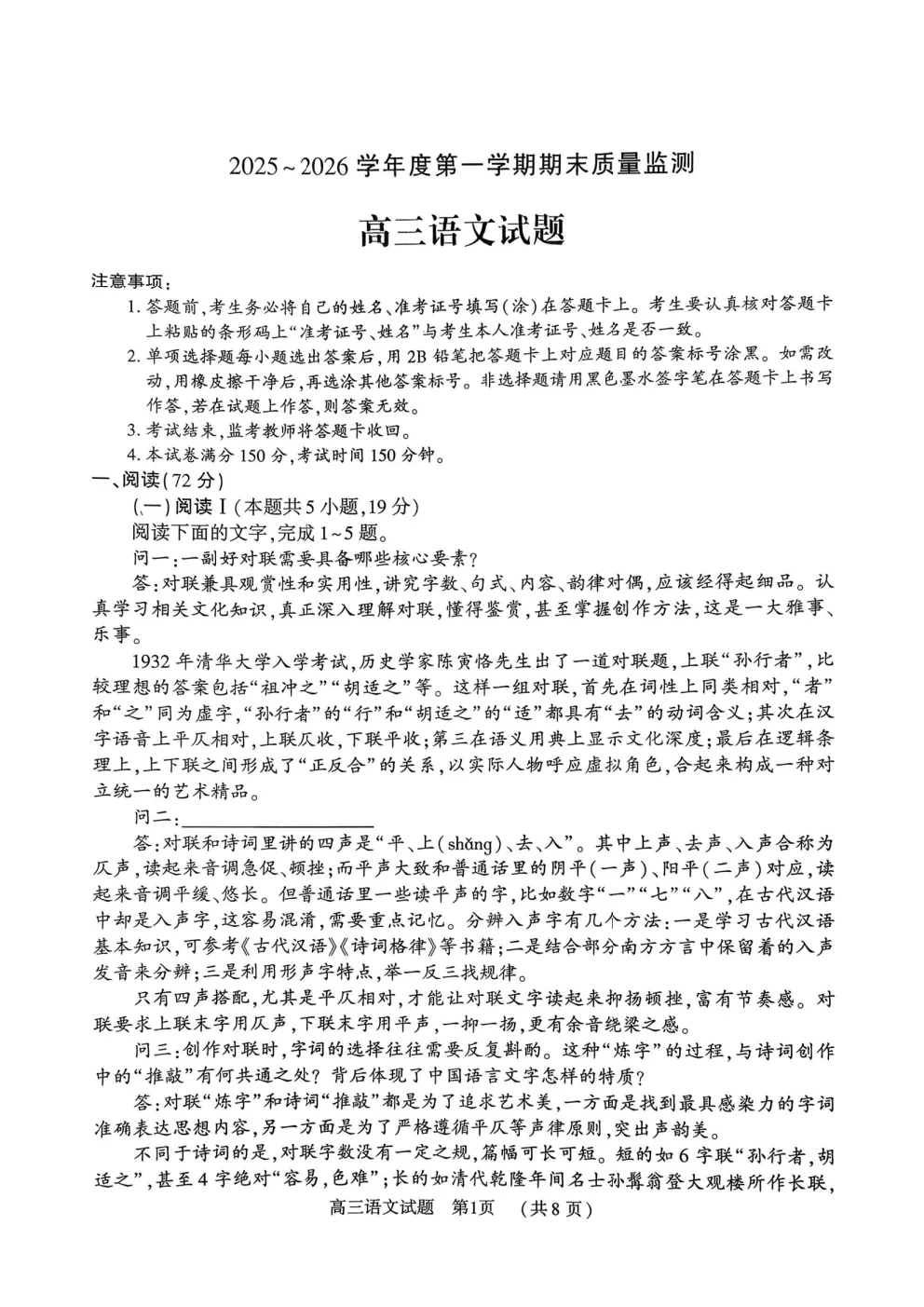 湖北省2026届武汉市武昌区元月高三1月期末考试湖北省2026届武汉市武昌区元月高三1月期末考试