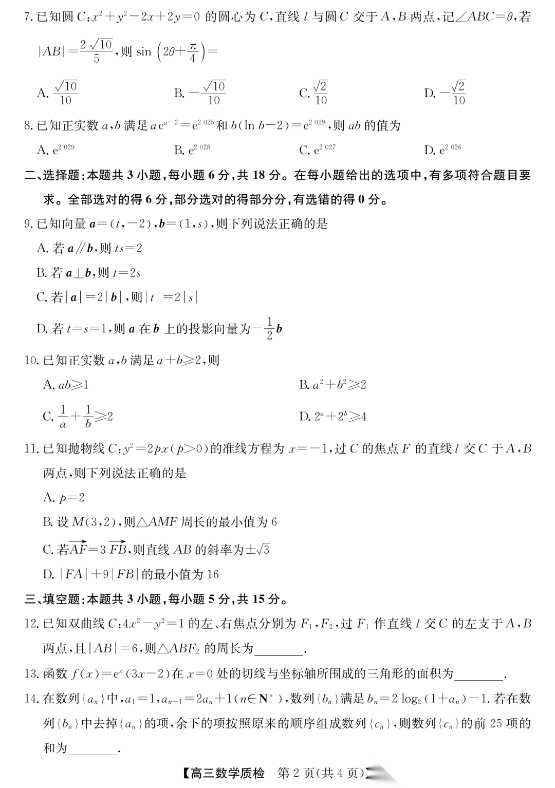2026金科大联考高三2月联考答案2026金科大联考高三2月联考答案