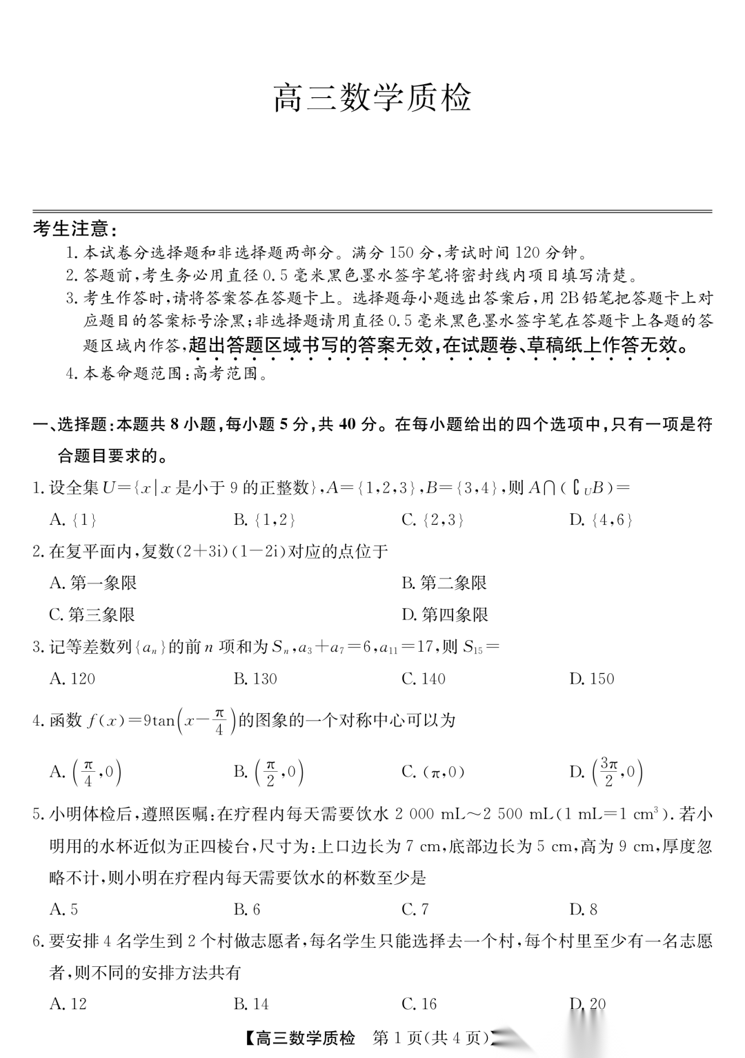 驻马店2025-2026学年度高三期末质量监测答案驻马店2025-2026学年度高三期末质量监测答案