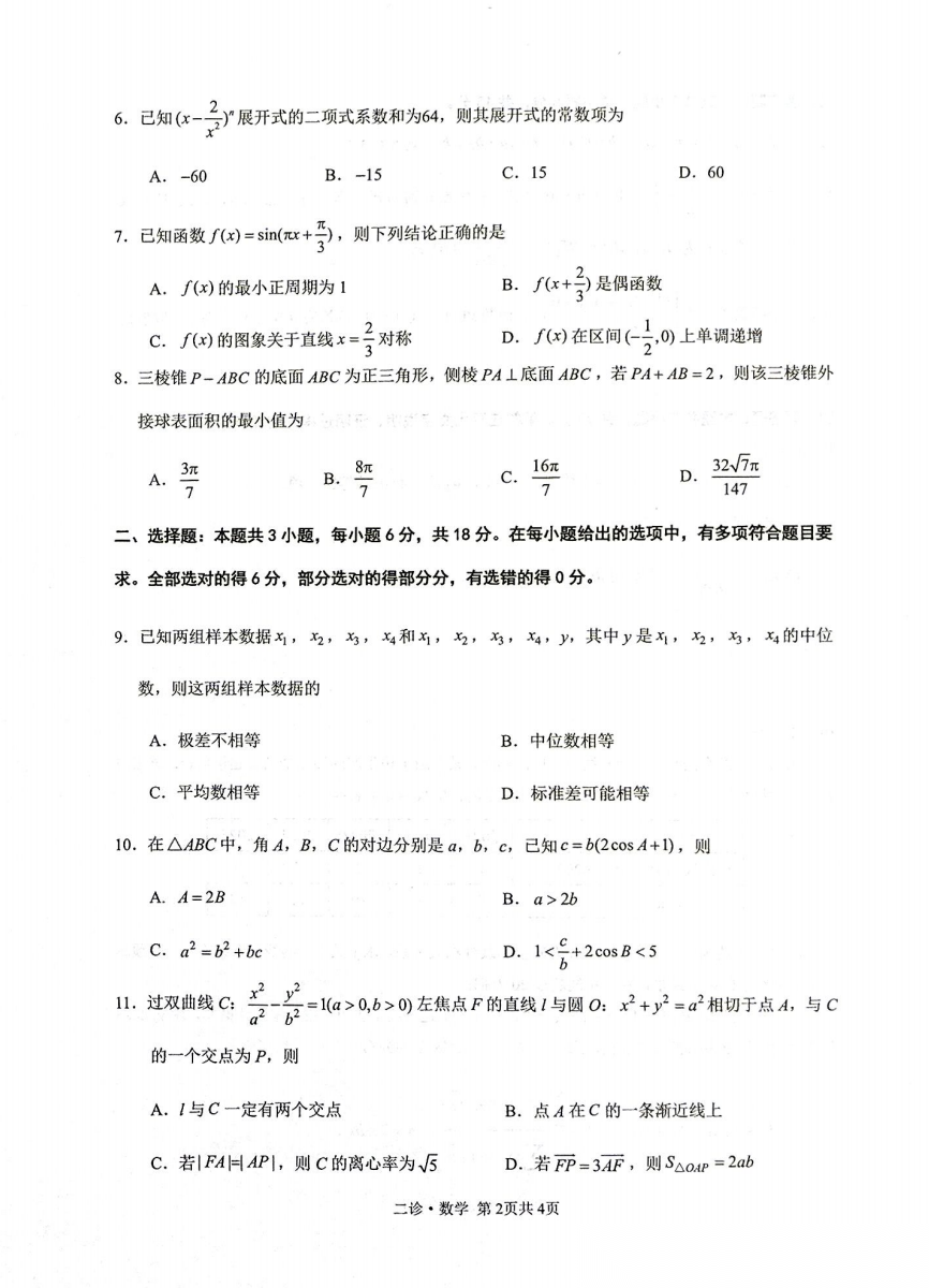 【泸州二诊全科】泸州市2026届高三第二次教学质量诊断性考试