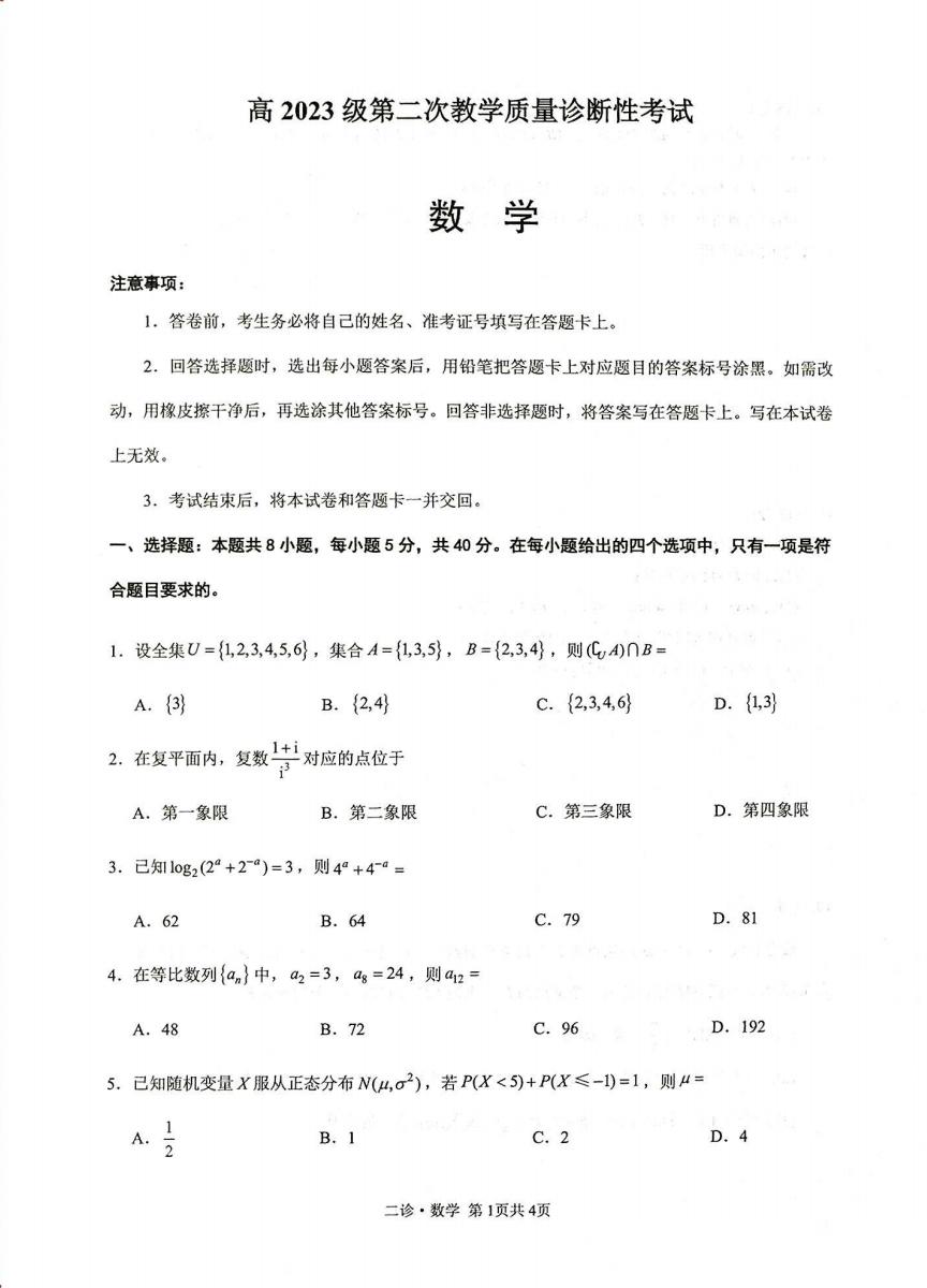 四川省泸州市高2023级第二次教学质量诊断性考试(泸州二诊)四川省泸州市高2023级第二次教学质量诊断性考试(...