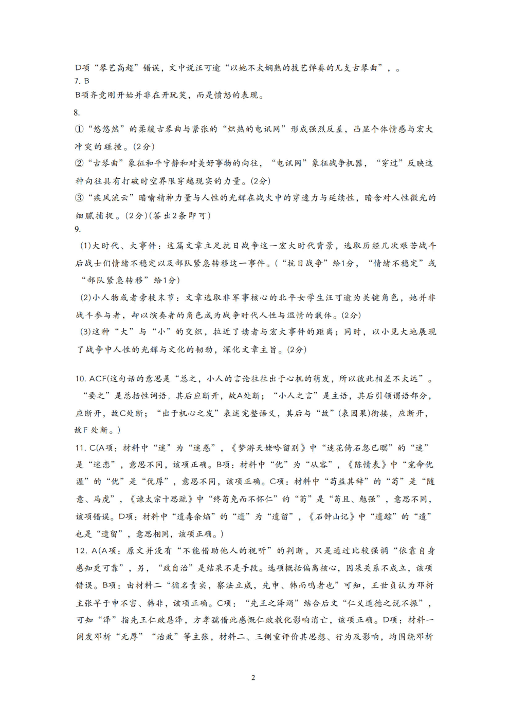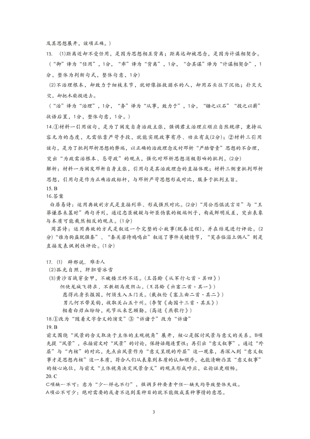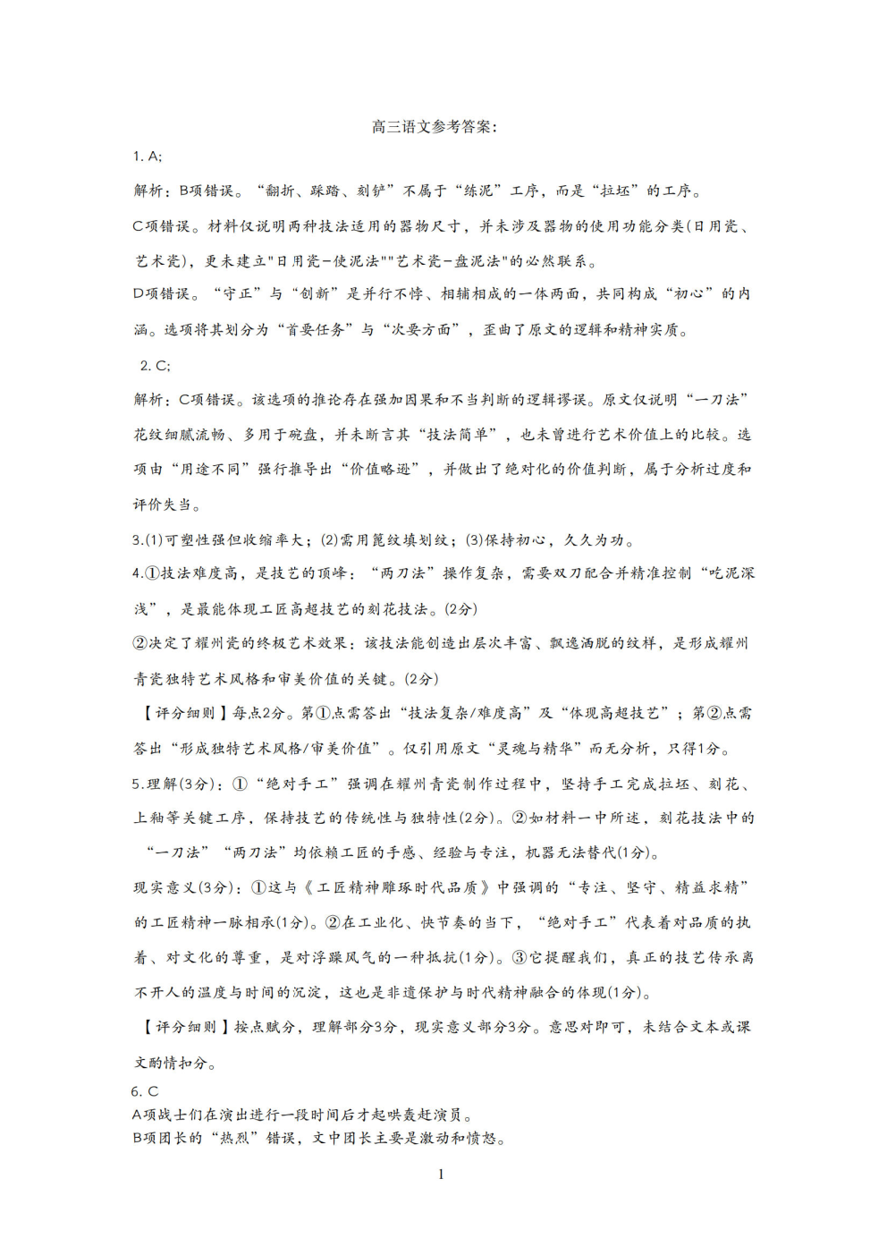 2026嘉兴高三期末检测答案2026嘉兴高三期末检测答案