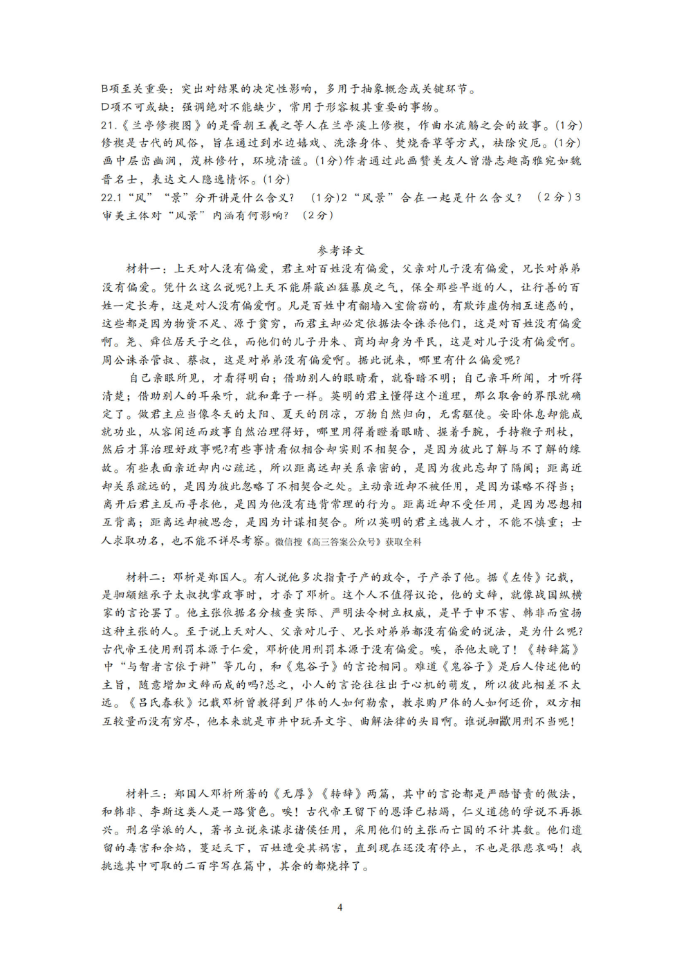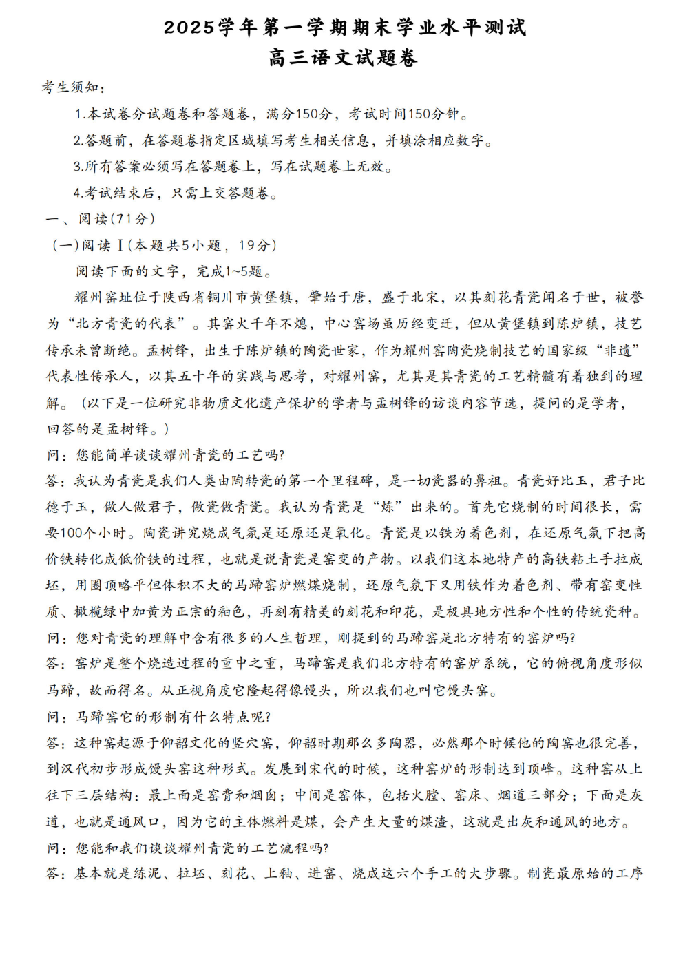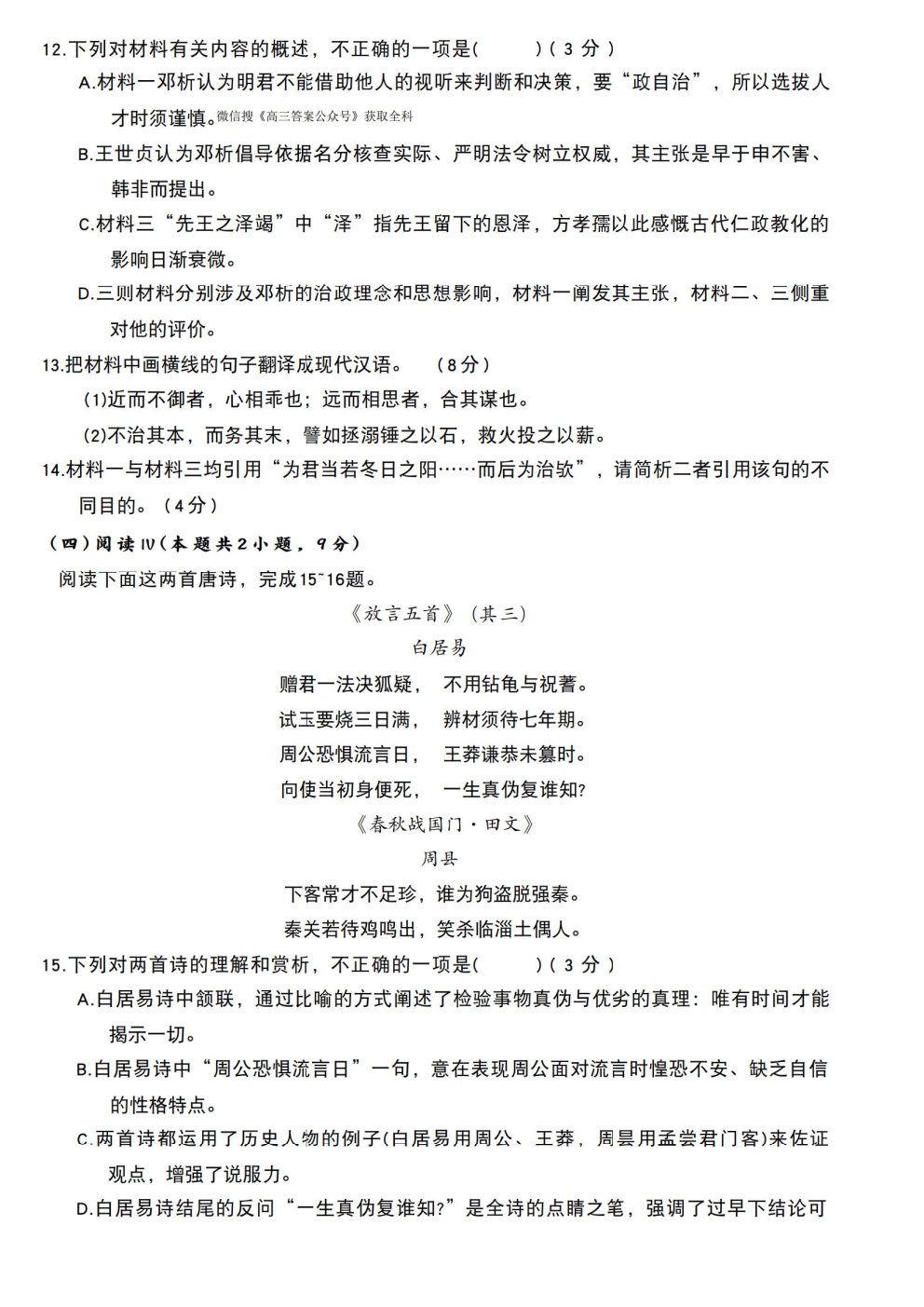 2026嘉兴高三期末检测答案2026嘉兴高三期末检测答案
