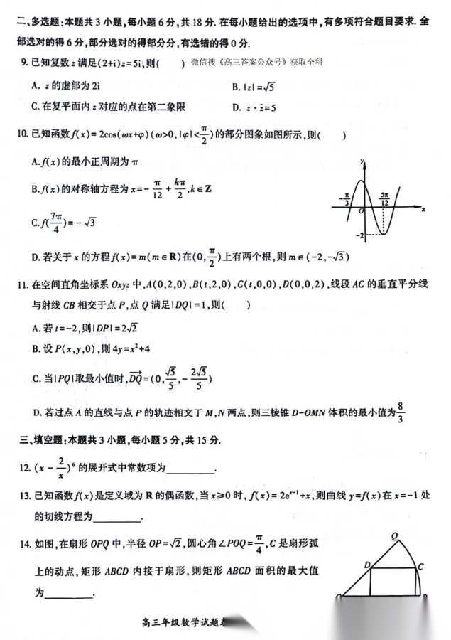 2026年2月高三年级适应性考试答案2026年2月高三年级适应性考试答案