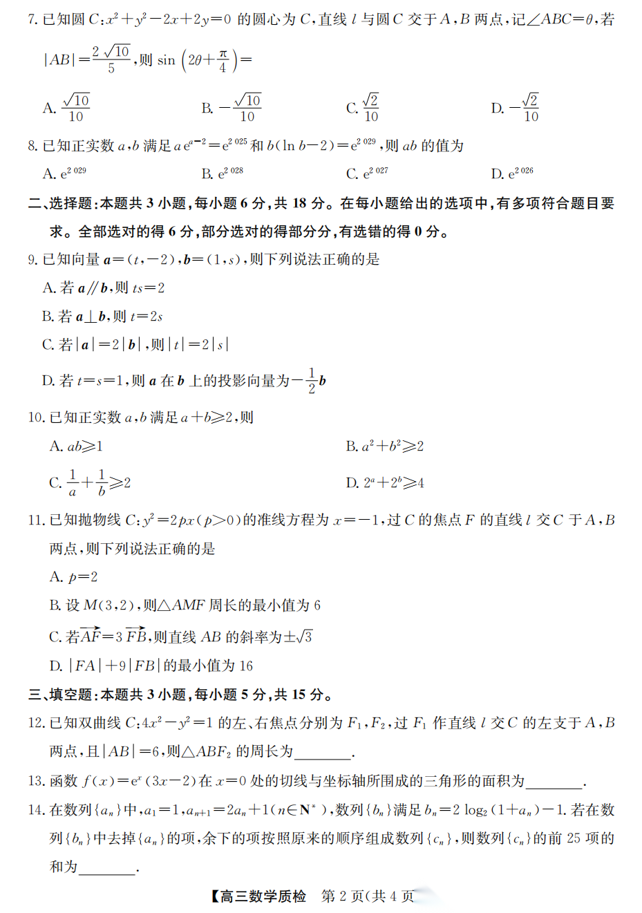2026年2月高三年级适应性考试下载2026年2月高三年级适应性考试下载