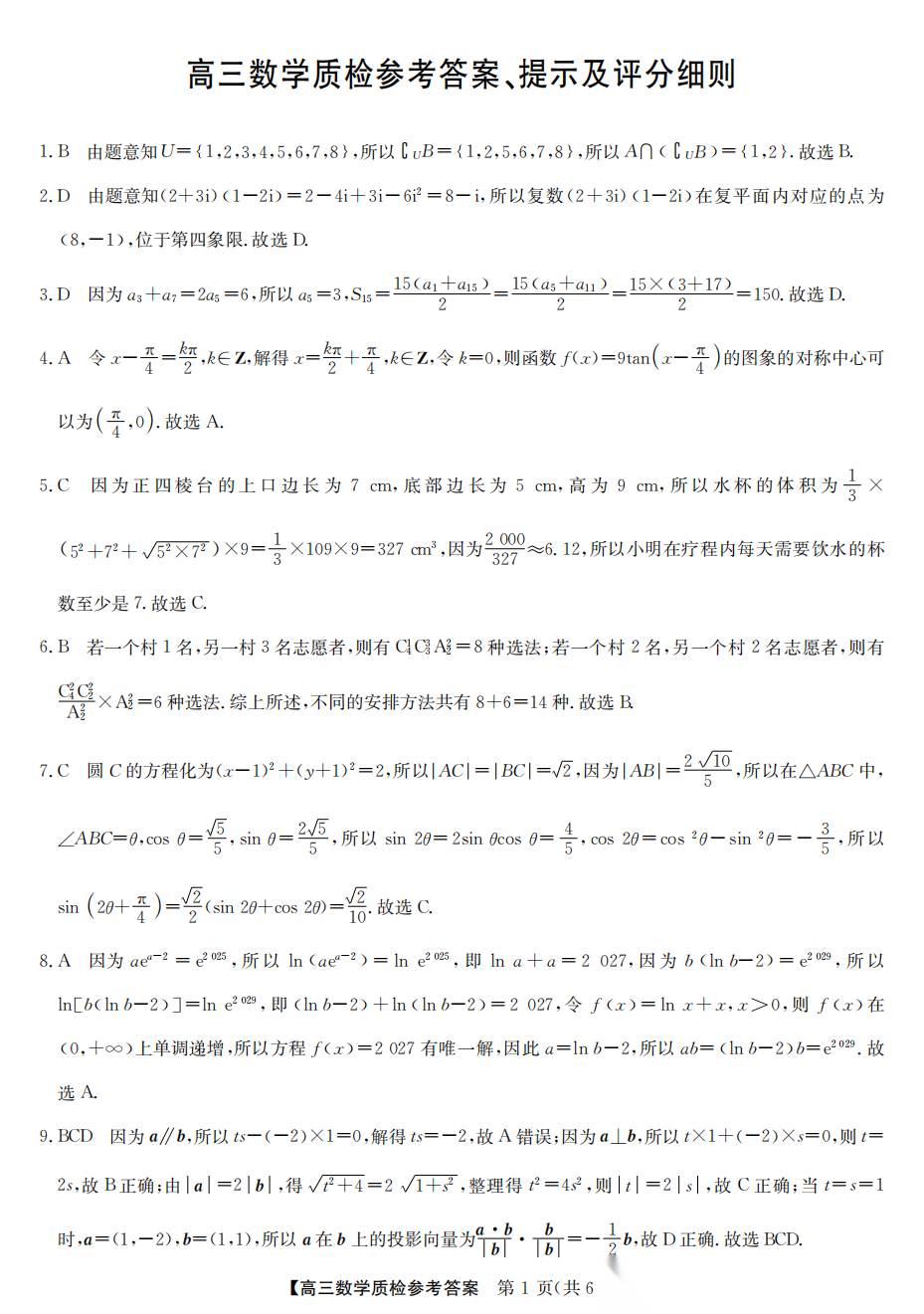 【苏州零模】2026高三期末考试答案【苏州零模】2026高三期末考试答案