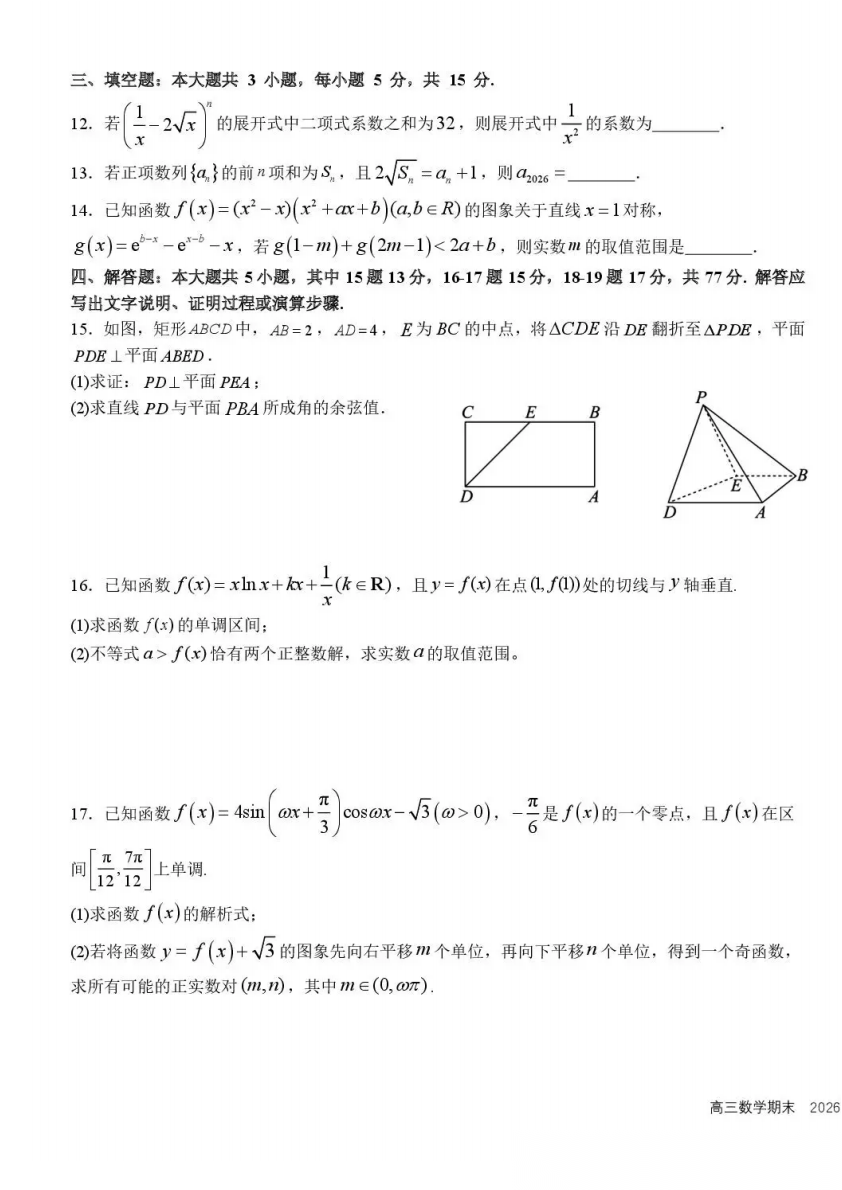 【保山统测数学】保山市2025-2026学年高三上学期期末质量监测【保山统测数学】保山市2025-2026学年高三上...