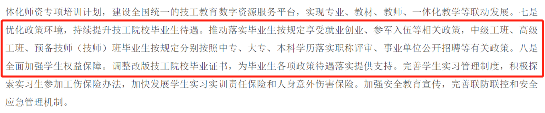 我省在技师学院毕业证书上也有明确文字体现:“高级技工班、预备技师(技师)班毕业生,分别按相当于大专、本科学历落实相关待遇”。