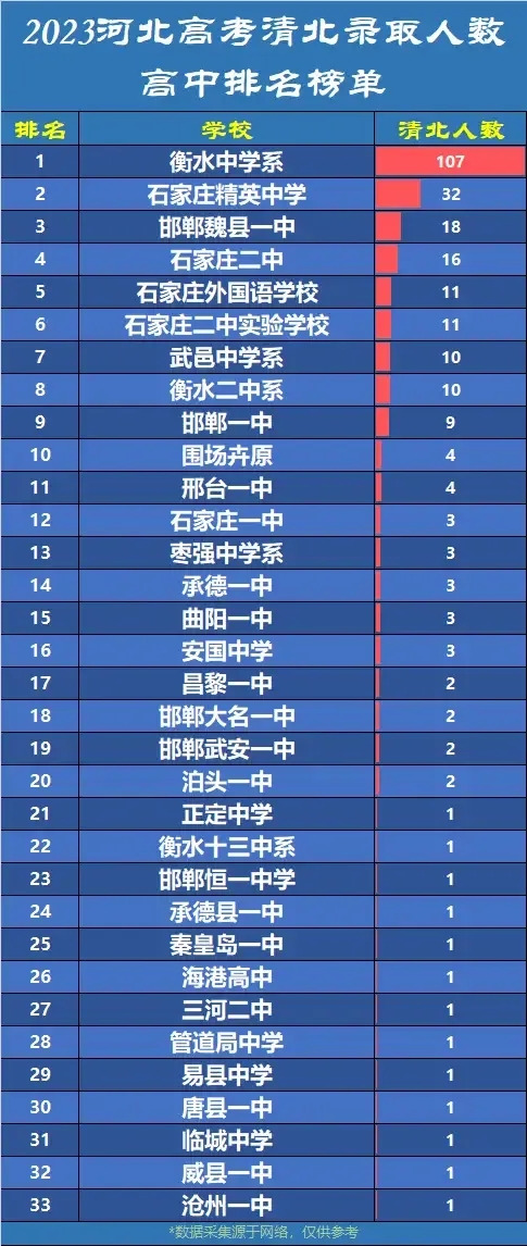 2023河北高考清北录取人数高中排名榜单河北好高中好很多,但是真要做全省排名还是挺难的,但...