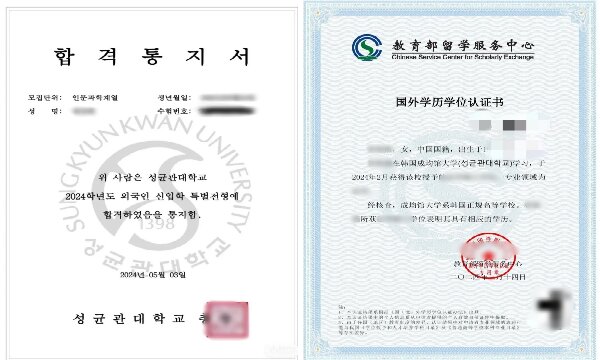 成均馆大学学士学位证书样本/ 中留服国外学历学位认证书样本