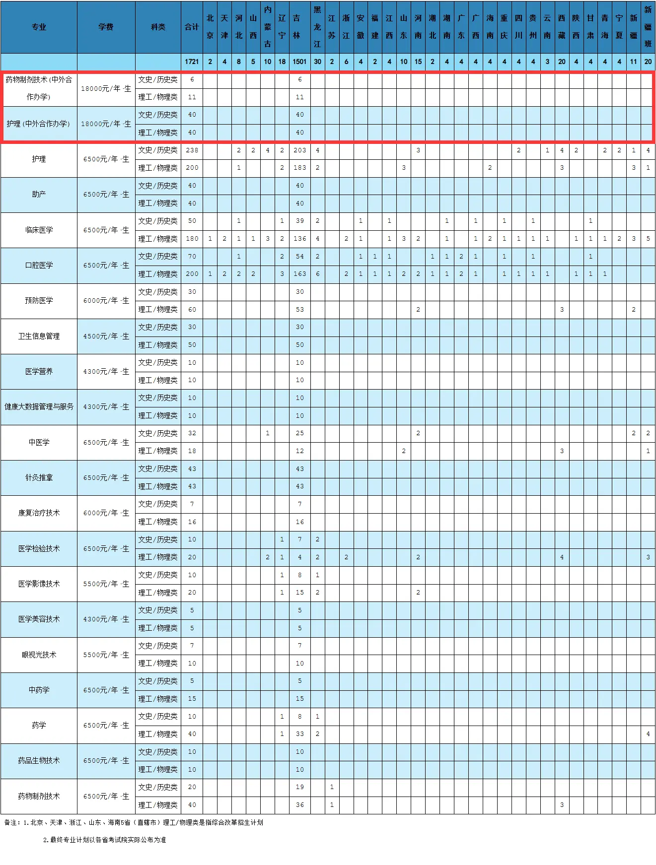 长春医学高等专科学校2024年普通高考招生计划-中外合作办学